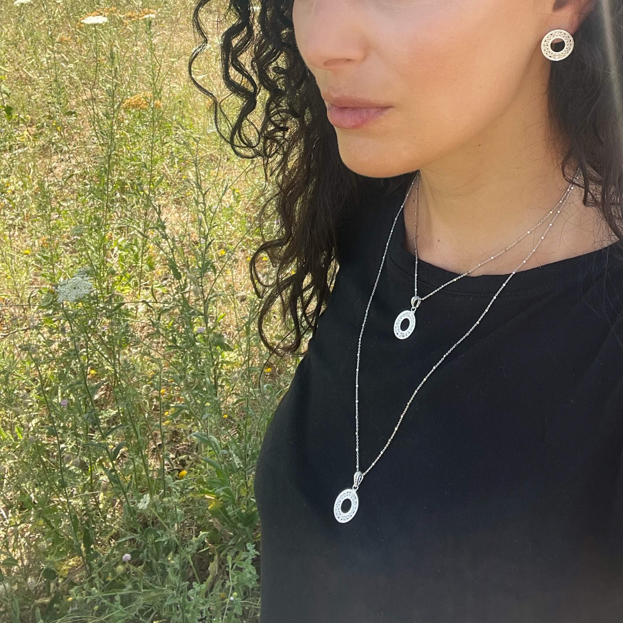 Ciondolo in argento rodiato con catenina da 45 cm o 60 cm in argento con piattine, realizzato dall’Oreficeria Di Rienzo di Scanno in esclusiva per Chiò.