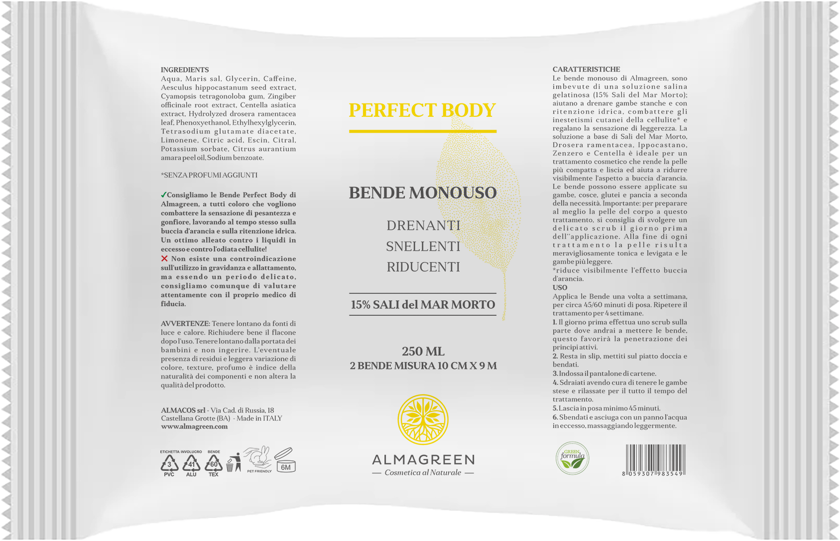 ✔ Consigliamo le Bende Perfect Body di Almagreen, a tutti coloro che vogliono combattere la sensazione di pesantezza e gonfiore, lavorando al tempo stesso sulla buccia d’arancia e sulla ritenzione idrica. Un ottimo alleato contro i liquidi in eccesso e contro l’odiata cellulite!