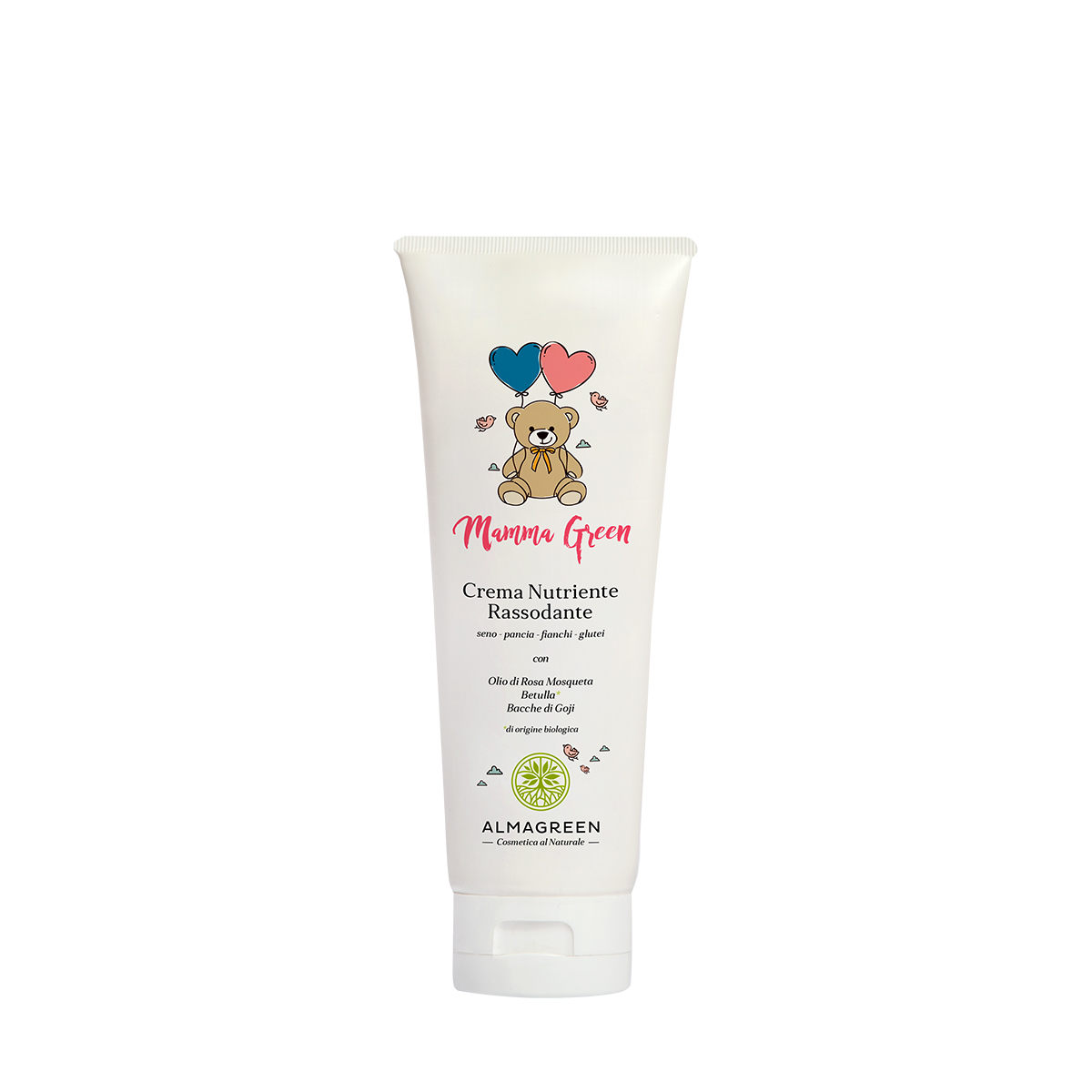 La CREMA NUTRIENTE RASSODANTE aiuta a rassodare, nutrire , tonificare ed idratare la pelle anche durante i mesi del post parto, grazie ad una composizione di ingredienti di origine naturale come gli estratti di Centella e Betulla ( di agricoltura biologica) dalle proprietà drenanti, l’Olio di Cocco, Lino, Argan dalle proprietà elasticizzanti ed idratanti, l’Olio di Rosa Mosqueta che agisce sull’invecchiamento precoce dei tessuti. Con l’aggiunta di Bacche di Goji e Vitamina E, è molto utile per prevenire la formazione di radicali liberi , anche a causa dello stress del parto.