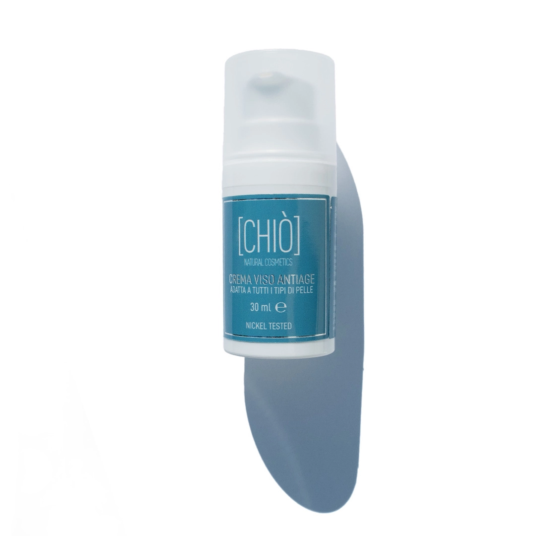 La crema viso antiage di Chiò è adatta a tutti i tipi di pelle, di tutte le età, anche le più sensibili ed affaticate. Performante nell’idratazione della pelle e nella lotta contro i radicali liberi. Si assorbe rapidamente, non unge, dalla profumazione delicata è dermatologicamente testata sulle pelli sensibili ed approvata non irritante. E’ confezionata in un flacone airless, che preserva il prodotto da contaminazioni e ne riduce lo spreco.