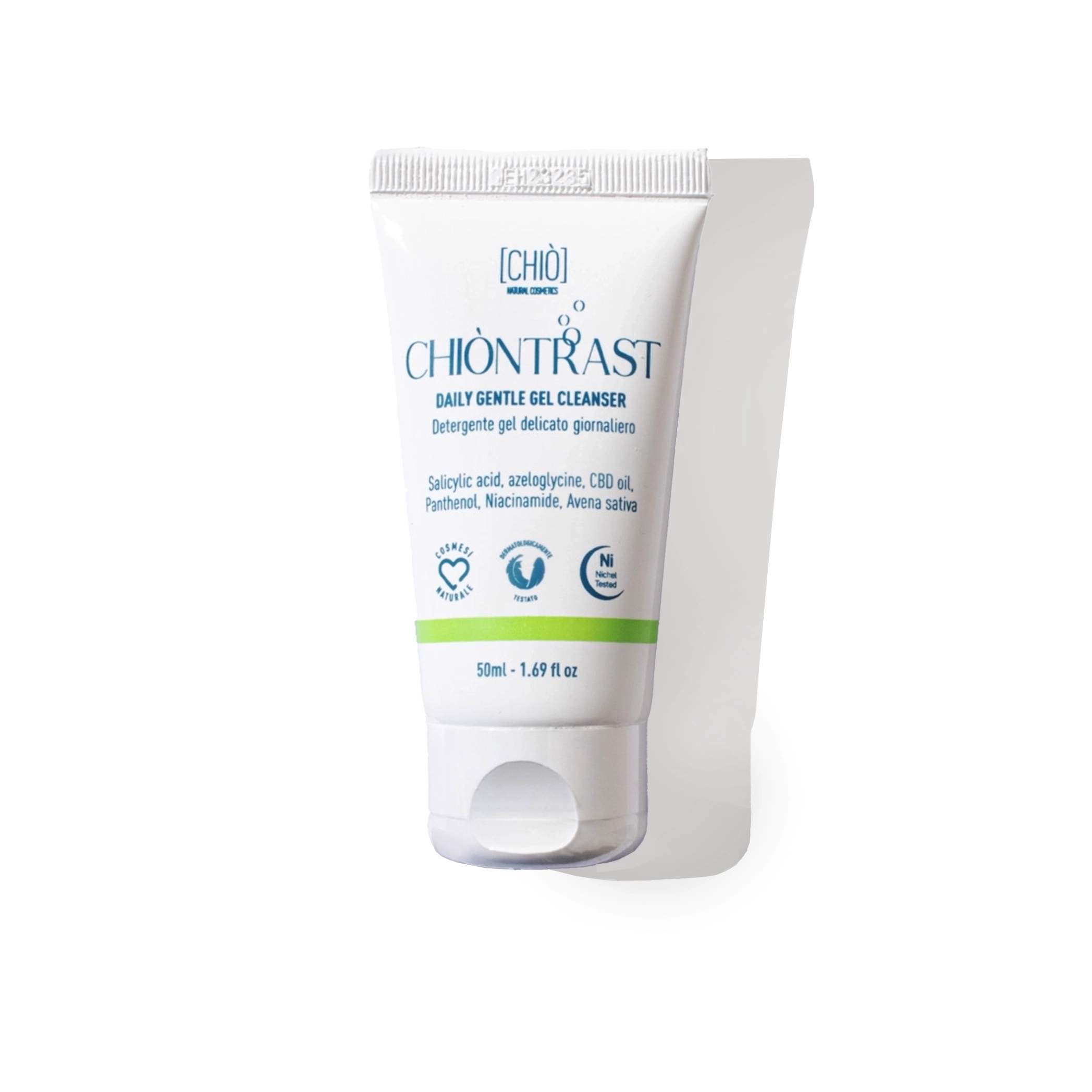 CHIÒNTRAST è un gel per la detersione quotidiana del viso, ideale per pelli miste, soggette ad imperfezioni sulle quali è molto efficace, ma delicato. A contatto con l’acqua si trasforma in una morbida schiuma facile da risciacquare.