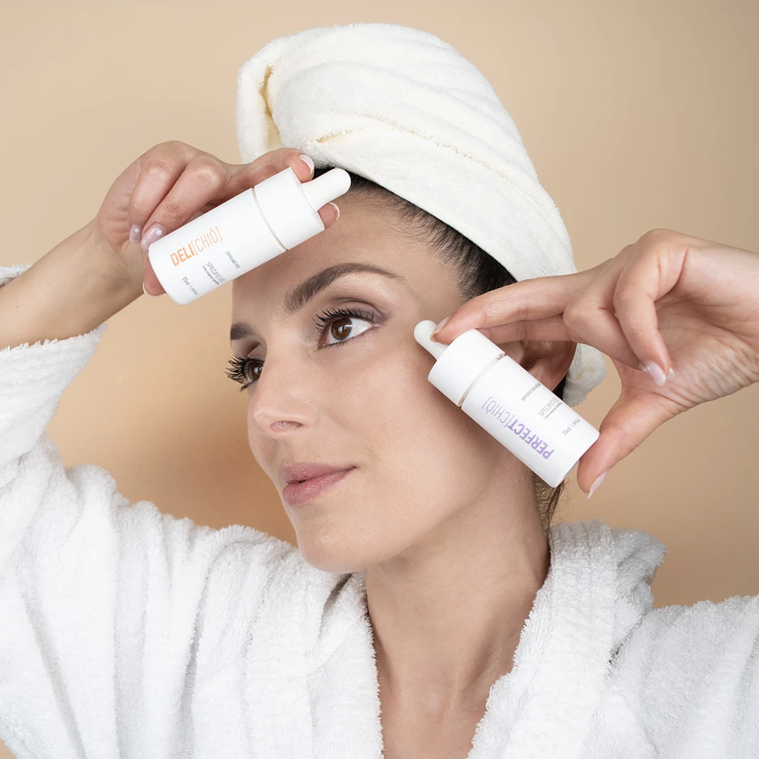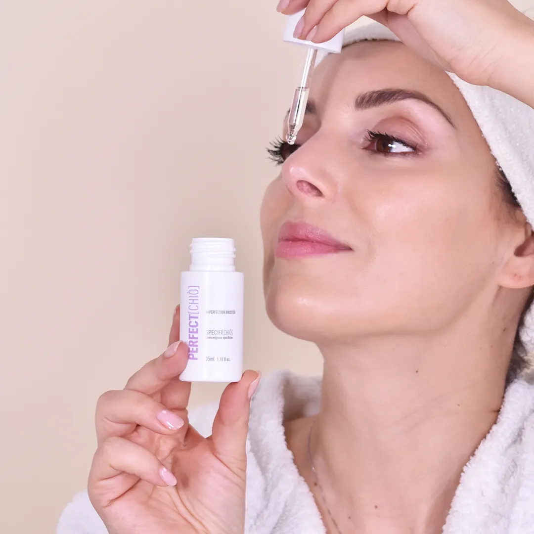PERFECT[CHIÒ] è un booster, un amplificatore di benessere cutaneo, un super siero concentrato per risolvere specifiche esigenze: imperfezioni come punti neri, punti bianchi, pustole, macchie causate dal sole, macchie rosse da brufoli o cicatrici, colorito spento.